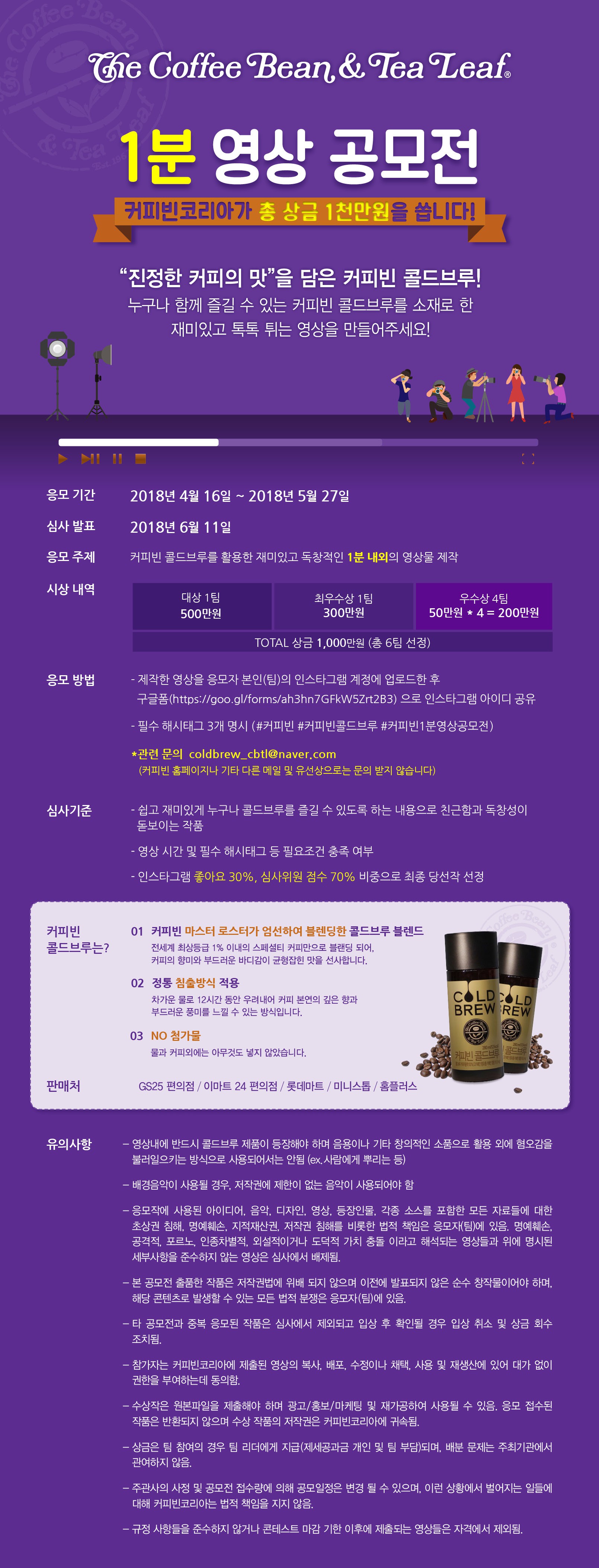 - 커피빈 콜드브루를 활용한 재미있고 독창적인 1분 내외의 영상물 제작