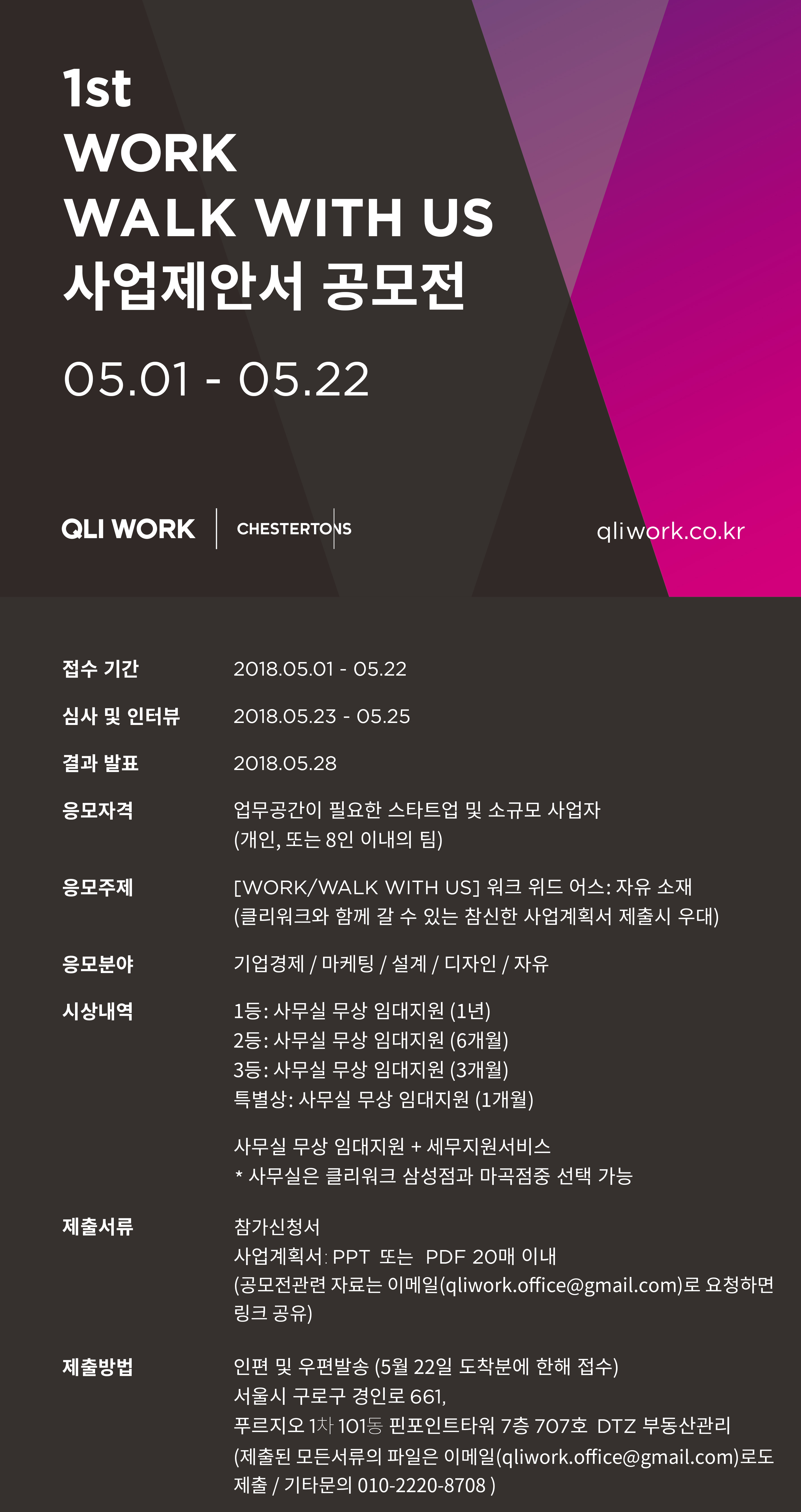공모전 관련 문의사항은 문의처(010-2220-8708) 또는 이메일(qliwork.office@gmail.com)로 문의해주십시오.