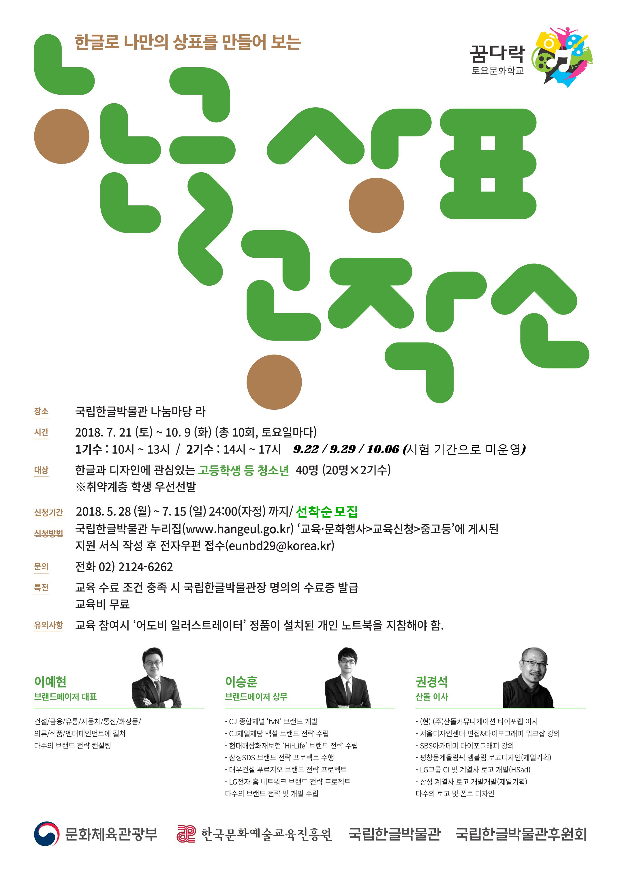- 한글과 디자인에 관심있는 고등학생 등 청소년 40명 (20명×2기수)