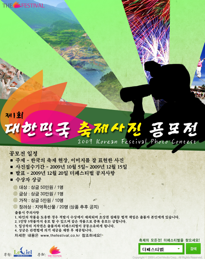 더페스티벌이 주최하는 제 1회 대한민국축제사진공모전이 그 막을 열였습니다.