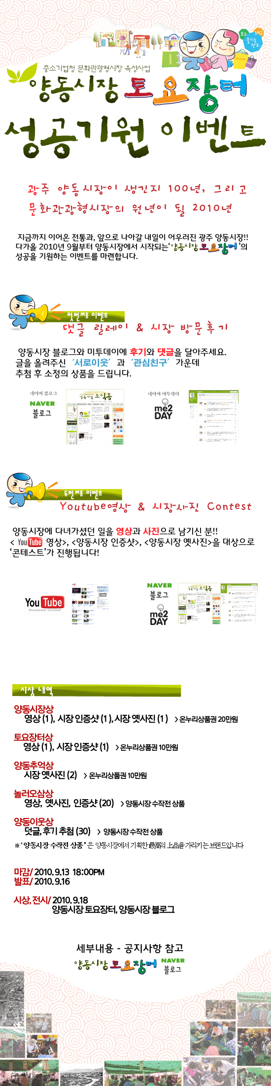 - 2010년 9월 16일 (양동시장 공식 블로그 게시 및 개별 통보)