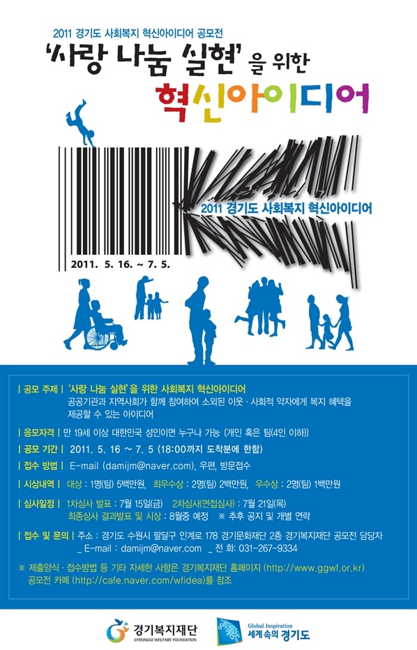 신규 사업 및 도 정책 사업으로 추진할 수 있도록『2011 사회복지 혁신아이디어 공모전』을