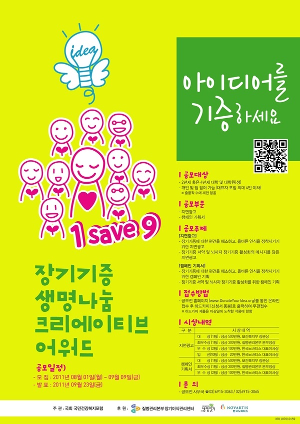 - 장기기증 서약 및 뇌사자 장기기증 활성화의 메시지를 담은 지면광고